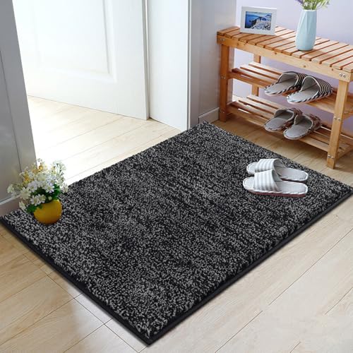 SHACOS Tapis Entree Interieur Antidérapant Tapis de Bain, Paillasson Exterieur Entree Lavable en Machine, Microfibre Absorbante Tapis, Paillasson Interieur Entrées pour Chiens, Noir Gris, 40x60cm