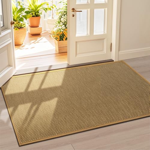 LEKEEPGO Tapis Entree Interieur, Paillasson Interieur Entree Antidérapant, Tapis intérieur Entree Absorbant Lavable, Tapis d'Entrée Fin Tapis de Porte pour Entrée, Cuisine, Brun Clair, 90 x 150 cm