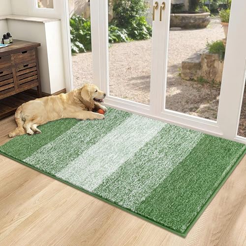 SHACOS Tapis Entree Interieur Antidérapant Tapis de Bain, Paillasson Exterieur Entree Lavable en Machine, Microfibre Absorbante Tapis, Paillasson Interieur Entrées pour Chiens, Vert, 60x90cm