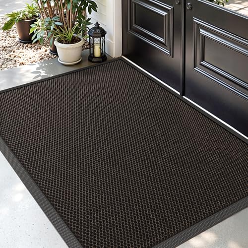 DEXI Paillasson Exterieur Entree 60 x 90 cm, Tapis Entrée Interieur Antidérapant et Imperméable, Profil Bas, Lavable Paillassons pour Porte, Jardin, Cour, Marron
