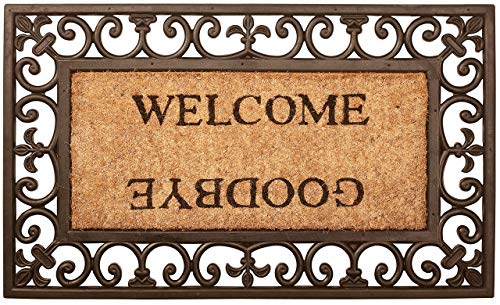 Relaxdays Paillasson WELCOME en fibres de Coco tapis de sol pour porte entrée 60 x 40 cm natte dessous antidérapant caoutchouc PVC essuie-pieds saleté intérieur extérieur intempéries, marron