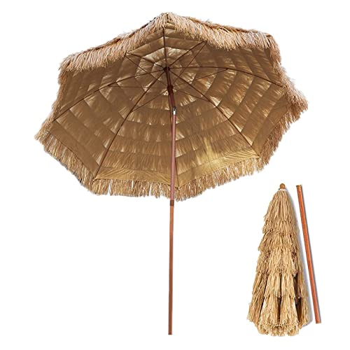 HonunGron 1.6m/2m/2.4m/3m Parapluie de Parasol de Paille de Plage hawaïenne Tropicale,Parasol De Jardin Exterieur,avec 8 Côtes Robustes, pour Le Camping en Plein Air (2.4M)