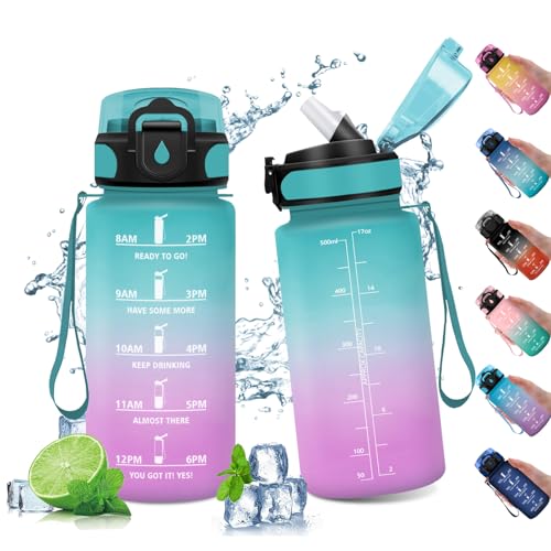 Grsta Gourde, Gourde 500ml, Bouteille avec Paille, Anti Fuite, Bouteille Motivation, Facile à Transporter, Verrou de Sécurité, avec Slogan de Motivation, pour École, Sports, Voyage, Camping, Vélo