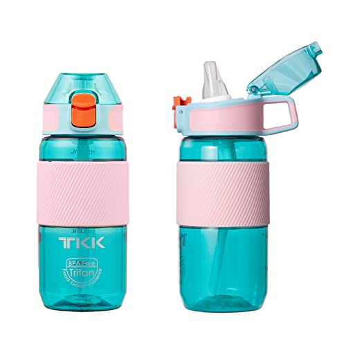 TITIROBA TKK Gourde avec paille 450 ml Bouteille d'eau anti-fuite sans BPA Tritan Spotr Bouteille d'eau pour vélo, camping, yoga, gym, rose 1003