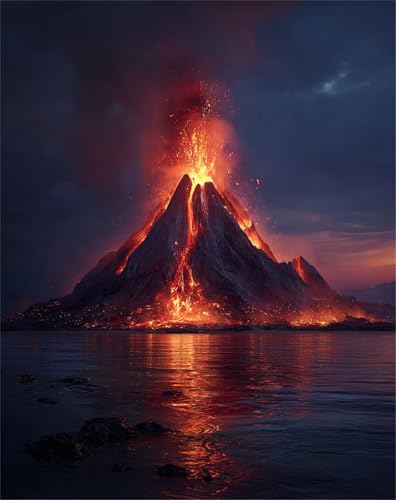 Naturelles Paint by Numbers, Volcan Paint by Numbers for Adult, DIY Kit de Peinture Numérique Canvas pour Débutants et Enfants de 8 à 12 ans, Sans boîte, Décoration Murale Maison 30x40cm Q-991
