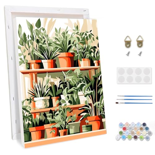 KEYIFA Peinture par Numéros pour Adulte, Plantes en Pot Kits de Peinture au Numéro avec Canevas Acrylique et Pinceaux, DIY Creatif Toile Kits Paint by Numbers, Décoration de Maison 30x40cm