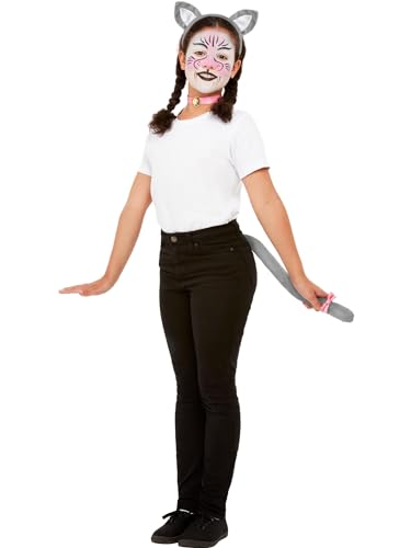 Smiffys Maquillage FX Smiffys, Kit de chat enfant, eau, Gris et rose, avec palette, pinceaux, bandeau, queue et col