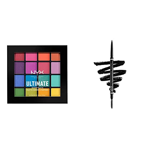 NYX Professional Makeup Palettes de Fards à Paupières Ultimate Shadow Palette & Crayon à Sourcils Micro Brow, Crayon Ultra-Fin Double-Embout avec Mine Rétractable et Goupillon, Teinte : Black