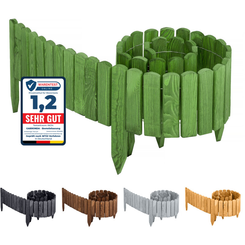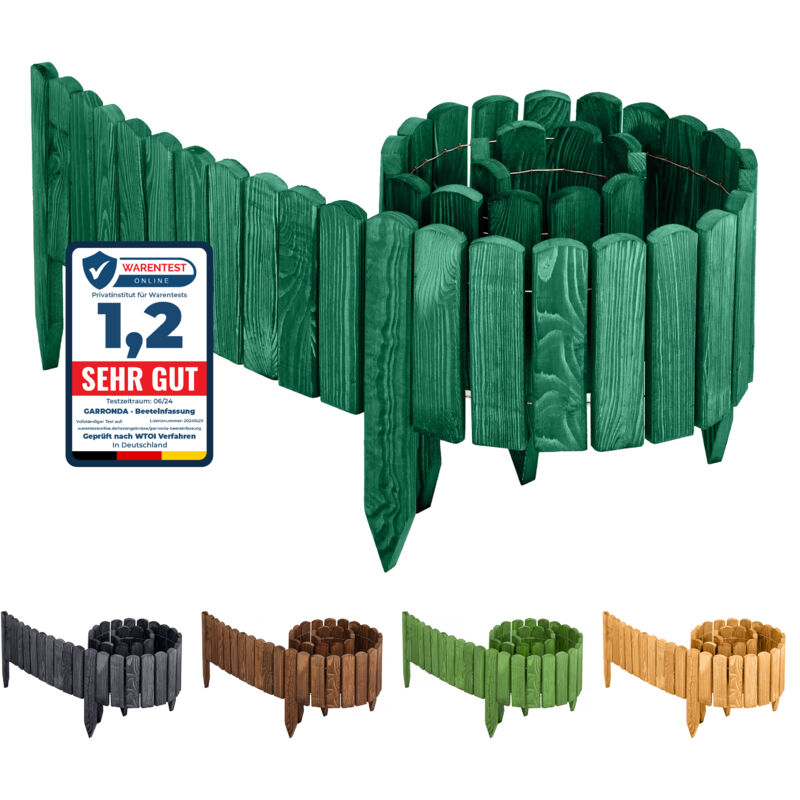 Garronda Clôture de Jardin en Bois, Bordure d'Extérieur, Barrières de Bois, Palissade, Bordurette Rollborder, Longueur: 200 cm GD-0046 (Vert Foncé,
