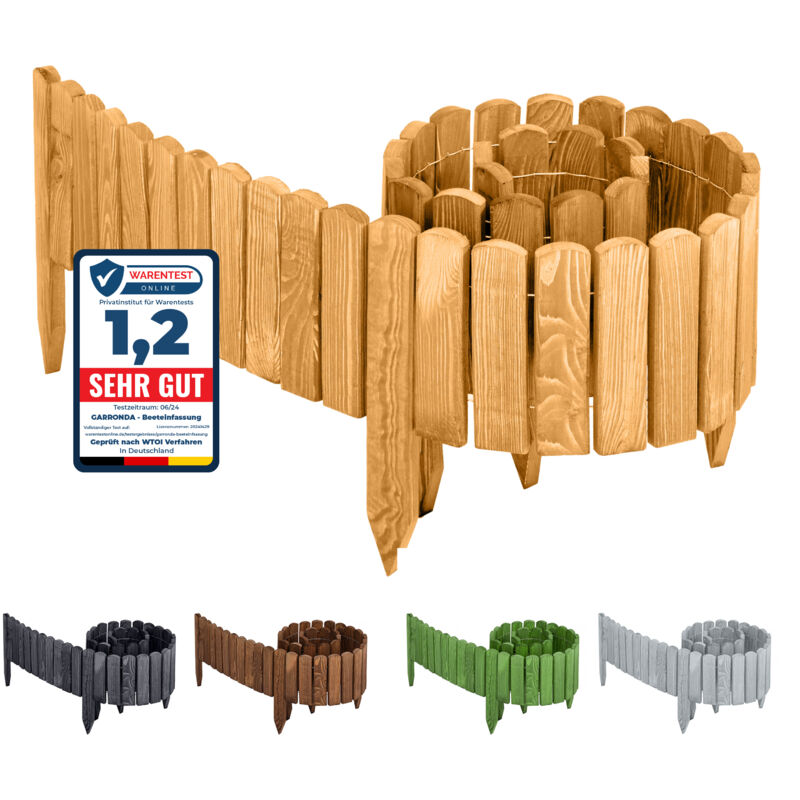 Garronda clôture de Jardin en Bois Bordure Jardin Cloture Jardin Exterieur Barrières de Jardin de Bois Palissade Bordurette de Jardin Longueur: 200