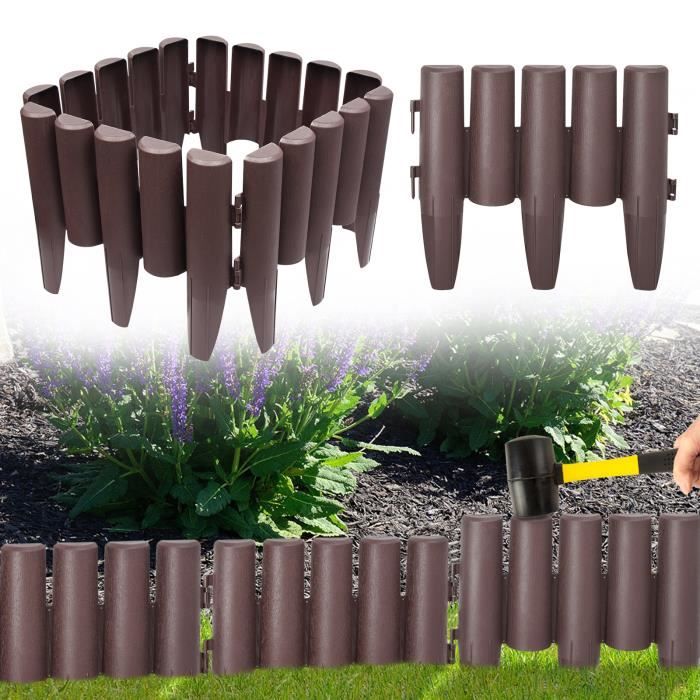 Bordure de Jardin - YUENFONG - Palissade en Plastique - Effet Bois - 56m - 20 pièces