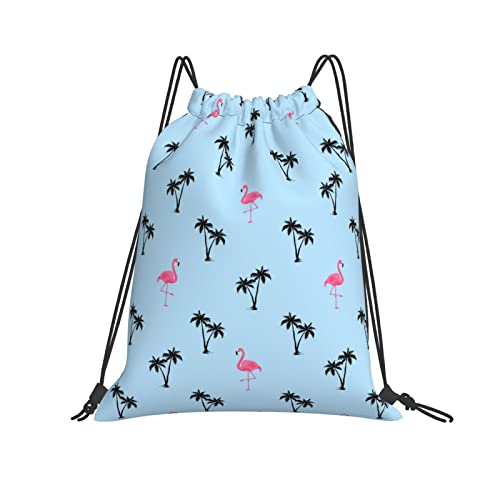 Lsjuee Sac à dos à cordon Flamingo Beach Palm Tree String Sac de sport Pull Cinch Sackpack pour hommes femmes Sport Yoga Voyage Natation Randonnée