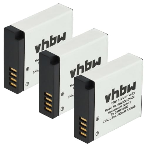 vhbw 3x Batterie compatible avec Panasonic Lumix DC-GX800K, DC-GX800, DC-GX850, DC-GX880 appareil photo (600mAh, 7,2V, Li-ion), puce d'information