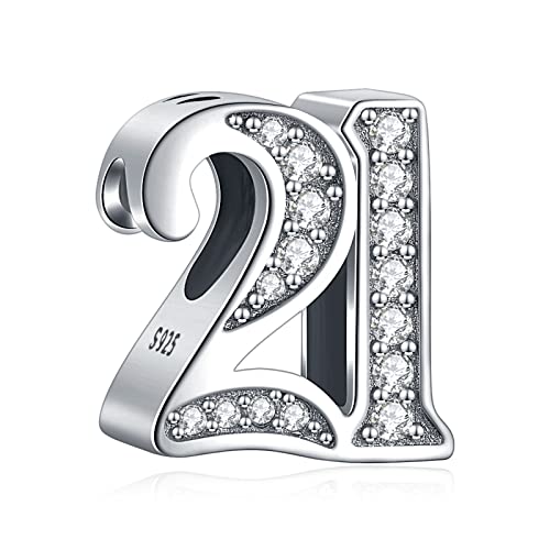 Amuefer Numéro 21 Charms pour Bracelets Pandora et Colliers Argent Sterling Joyeux Anniversaire Perle Happy Birthday Charme Noël Bijoux Cadeaux pour Femme Fille Enfant