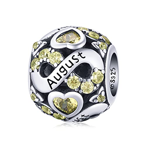 Juillet Birthstone Charms 925 Sterling Silver Love Heart Charm Perle pour Bracelet Pandora, Fête des Mères Bijoux Cadeaux pour Femmes Filles