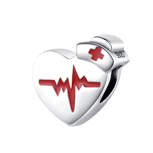 Amuefer ECG Infirmière Charms pour Bracelets Pandora et Colliers Argent Sterling avec Zircon Cubique Cœur Perle Charme Noël Bijoux Cadeaux pour Femme Fille