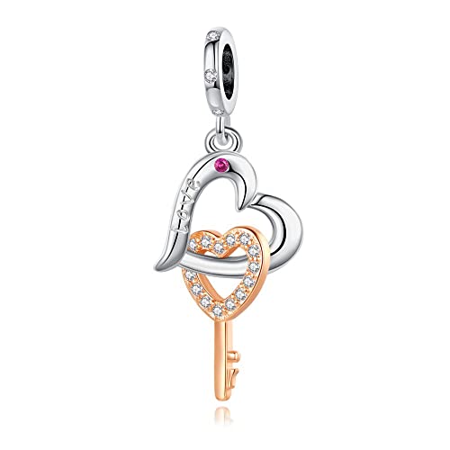 Amuefer Coeur Clé Charms pour Bracelets Pandora et Colliers Argent Sterling Or Rose Perle Charme Anniversaire Noël Bijoux Cadeaux pour Femme Fille Enfant