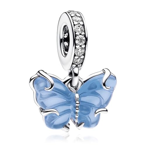 Amuefer Papillon Bleu Charms pour Bracelets Pandora et Colliers Argent Sterling Perle Charme Noël Bijoux Cadeaux pour Femme Fille Petite-fille Enfant