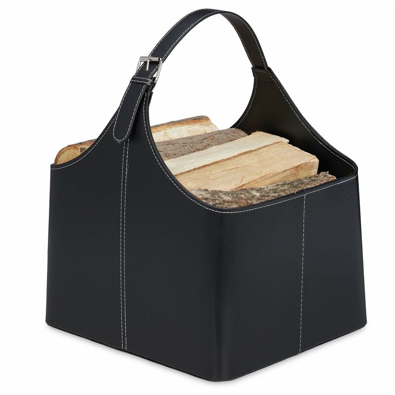 Jusch - Panier à bois, range-buches similicuir, porte-revues,accessoire cheminée, noir