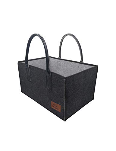 DeSen Sacs en feutre,Grands sacs à provisions avec poignées en cuir, Panier a bois,Sac buches cheminée,Paniers pique-nique,Sacs fourre-tout multifonctionnels (50x25x25cm,Anthracite/Gris Ⅱ)