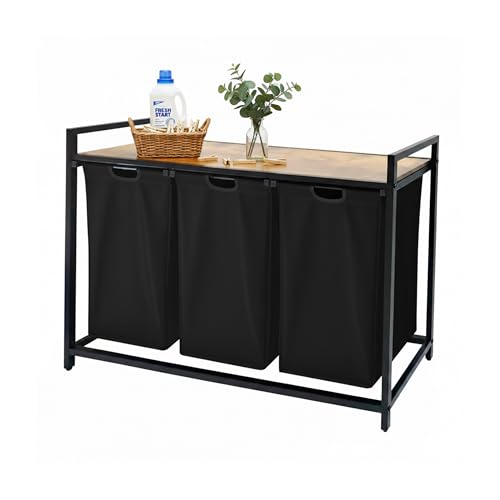 Lifewit 150 L Panier a Linge 3 Compartiment, Grande Corbeille Linge avec 3 Sacs Amovibles, Meuble Bac Linge Sale pour Chambre, Salle de Bain, Buanderie, Noir