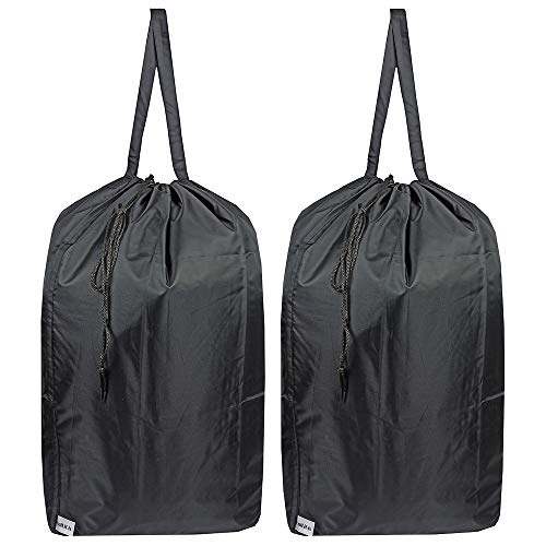 UniLiGis Lot de 2 sacs à linge de voyage lavables avec poignées et cordon de serrage, assez résistants pour contenir 3 charges de linge, convient pour panier à linge, 70 x 87,5 cm, noir