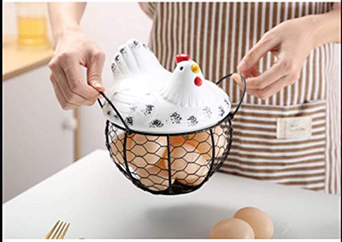 Panier à œufs décoratif pour comptoir, couvercle de poulet en céramique avec panier métallique, peut contenir 20 à 25 œufs