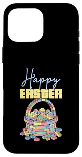 Happy Easter Block Building Panier à œufs en Briques Coque pour iPhone 16 Pro Max