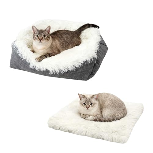 lit en peluche,2 in 1Lit pour Chat Chien,Lavable Lit pour Chat,Panier Chaton,Double Usage Panier pour Chat Coussin,Panier Chaton,coussin chat doux et confortable,coussin pour chat interieur (60x52cm)