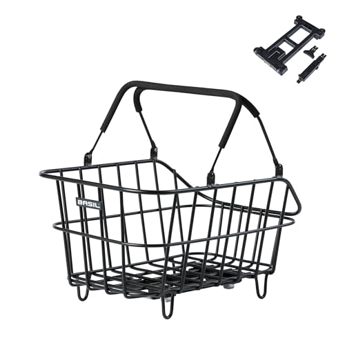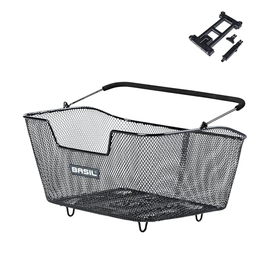 Basil Base M Multi System Panier de vélo Noir – Fond Multi-système NX, Compatible avec MIK, Racktime et Toutes Les plaques de Porte-Bagages courantes, résistant aux intempéries et Robuste, idéal pour