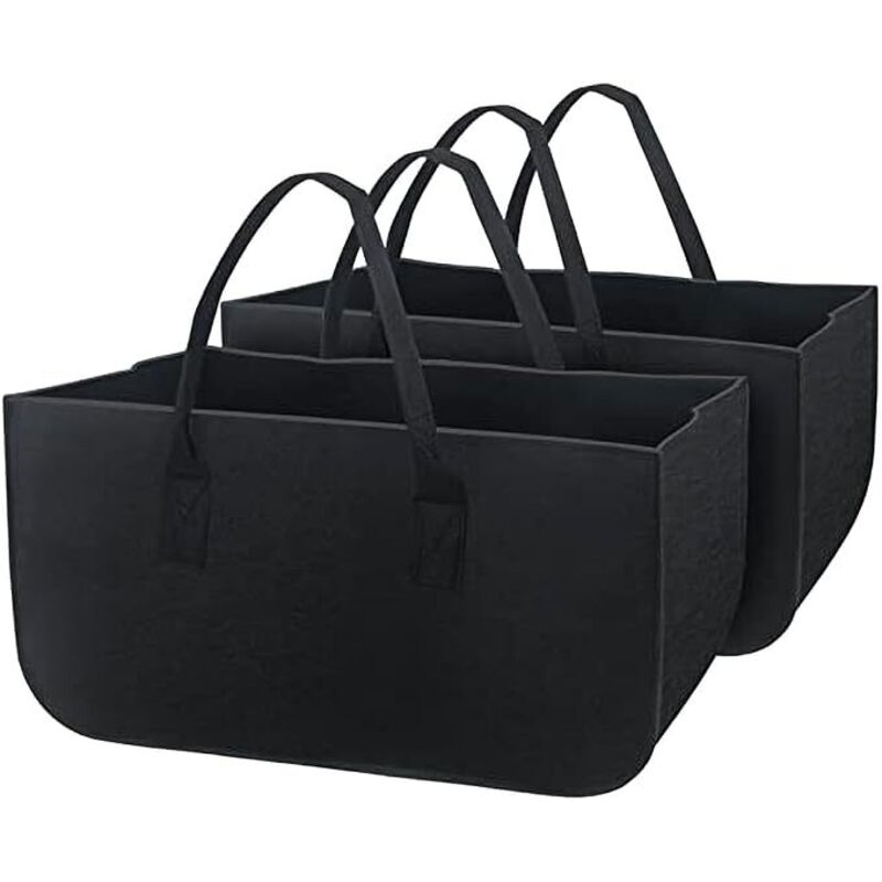 Lot de 2 sacs en feutre noir pour provisions, bûches de cheminée, panier à journaux Sac de Rangement, pour Bois de Chauffage, 28 litres, avec