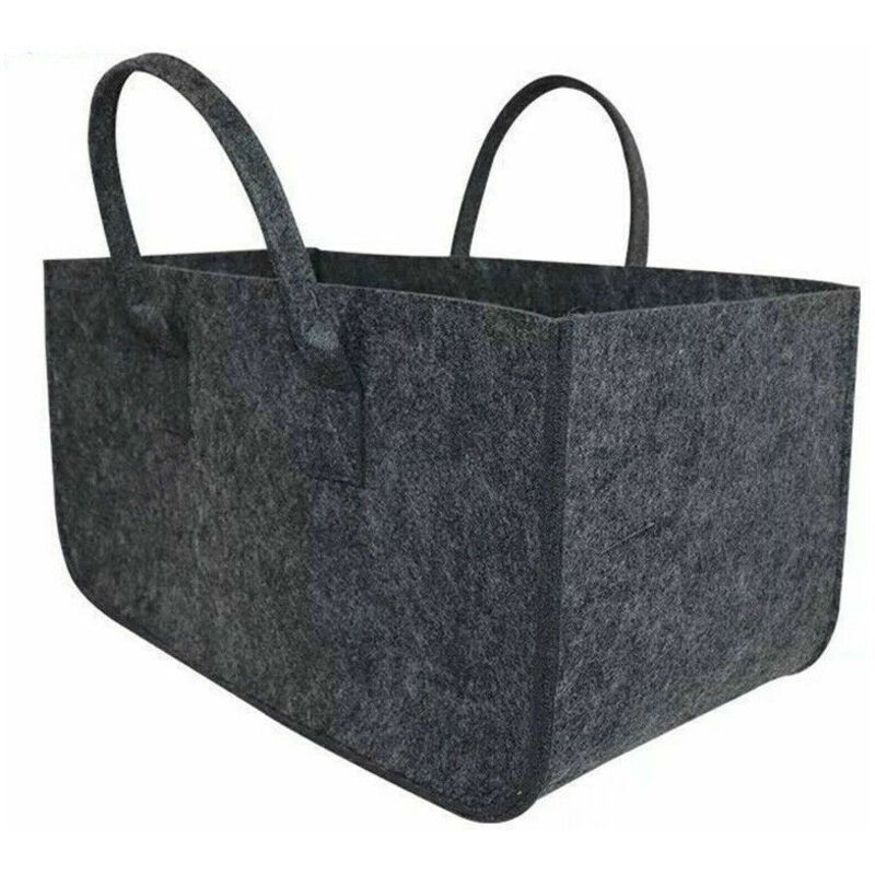 Panier à provisions pliable en feutre,Grand sac en feutre avec poignées,Pour journal de bois de chauffage,Gris foncé,50×25×25CM