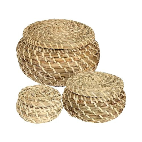 LIXSAZSE Petit panier en osier avec couvercle, décoration de salle de bain, élégants paniers ronds tressés pour étagère, rangement la maison, rangement décoratif en jonc mer pour organiser