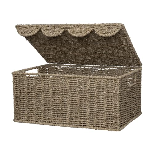 StorageWorks Panier en osier avec couvercle en jonc de mer naturel tissé à la main pour décoration, étagères, chambre d'enfant