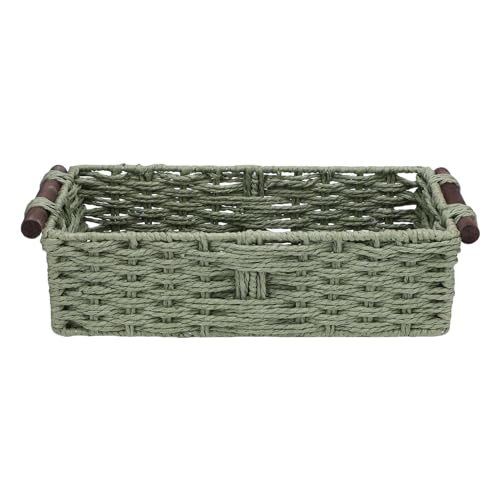 YUEHISY Panier à Papier Toilette, Bac de Rangement en Corde de Papier avec Poignées en Bois, étagères de Chambre et Comptoir, Idéal pour Les Amis ou la Famille (Couleur du Bois)