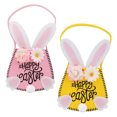 2 Pièces Panier de Lapin de Pâques, Panier de Pâque en Feutre à Remplir, Sac en Feutre Lapin de Pâques à Offrir, Paniers de Oeufs de Paques pour Enfant, Décoration de Paques
