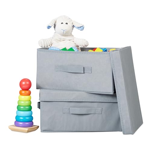 Relaxdays Panier de Rangement, Pliable, lot Pratique de 2, avec Couvercle, H x L x P : 17 x 23 x 33 cm, Gris