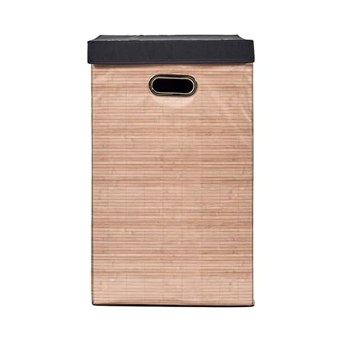 Je Cherche Une IDEE - Rg0040 - Panier à Linge Double 58X35X58 cm en Polyester - Idéal pour Le Tri du Linge - Design Élégant Effet Bois - Pliable et Pratique pour Salle de Bain ou Chambre - Marron