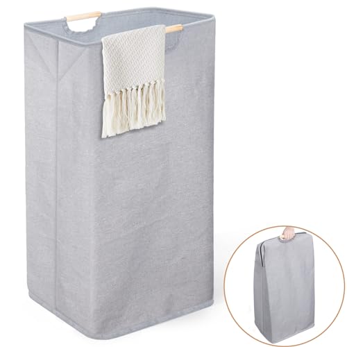 Zivacate Panier a Linge Gris 100L, Bac à Linge pliable Panier à Linge avec Manche en Bois, Corbeille à Linge grande Panier de Linge Sale pour Chambre Salon Chambre D'enfant Salle de Bain 74x41x33cm