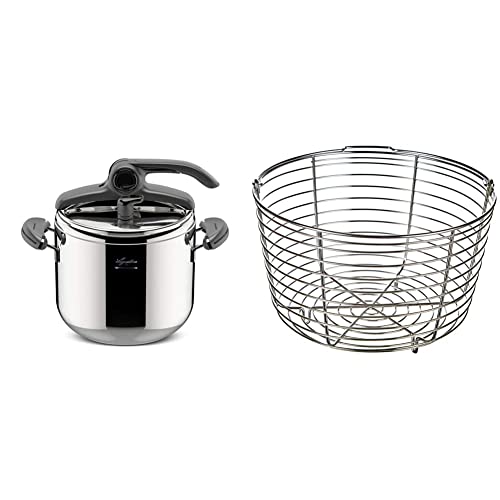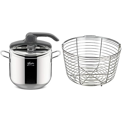 Lagostina Irradial Control Lagoeasy'UP Autocuiseur 7 L en Acier Inoxydable 18/10 Ø 22 cm & Accessoire pour panier à vapeur pour autocuiseur, acier inoxydable, diamètre 18 cm pour la capacité; 7 litres