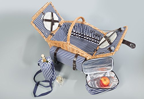 Home & Style Panier de pique-nique Sylt, bleu, 30 x 30 x 18 CM, 123253 C
