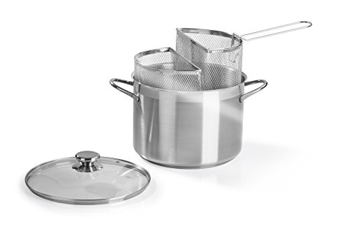 Pot avec Double Panier, ø24cm, Capacitè 6 lt, Acier Inoxydable 18/10, Induction, fabriqué en Italie., 24.5x34x17.7 cm