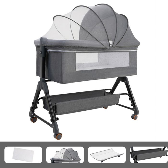 Lit Bébé Berceau Cododo pour Bébé 0-36 Mois Hauteur Réglable Lit Cododo avec Matelas Panier de Rangement Table à Langer - Gris