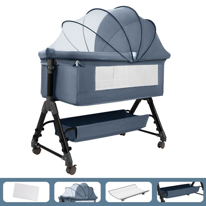 Lit Bébé Berceau Cododo pour Bébé 0-36 Mois Hauteur Réglable Lit Cododo avec Matelas Panier de Rangement Table à Langer - Bleu