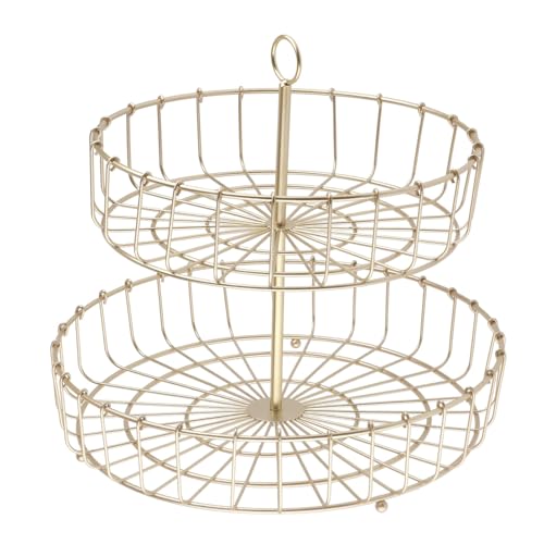 Tomotato Panier à Fruits à 2 Niveaux, Panier à Fruits en Fil de Fer, Bol Rond Doré, Organisateur de Fruits, Paniers de Rangement Sur Pied en Métal pour Maison Fête Comptoir de Cuisine