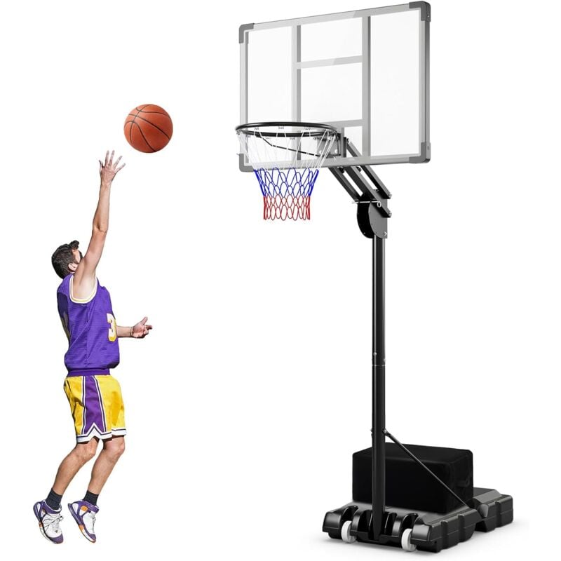 Panier de Basket Extérieur Portable Réglable en Hauteur154-210 cm Panier de Basket sur Pied à roulettes,Pied à remplir d'eau et de Sable pour extérieur, intérieur