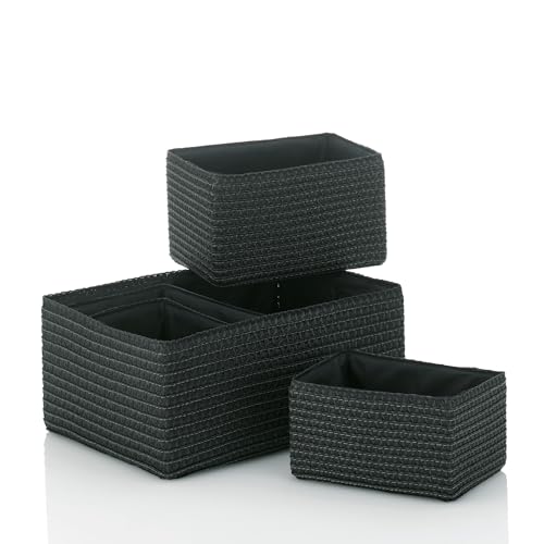 homyfort Lot de 3 paniers de rangement tissés durables avec poignées intégrées pour chambre à coucher, bureau, placard, chambre d'enfant, crèche, noir, 29 x 16,5 x 11,4 cm