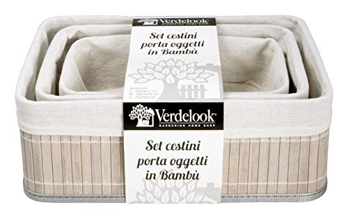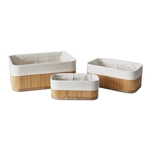 Compactor Lot de 3 paniers de Rangement en Bambou avec poignées, Bambou Naturel, Doublure en Tissu, Grand 33 x 23 x 12 cm, Moyen 29 x 19 x 10 cm, Petit 25 x 15 x 8 cm, Brun, RAN10569
