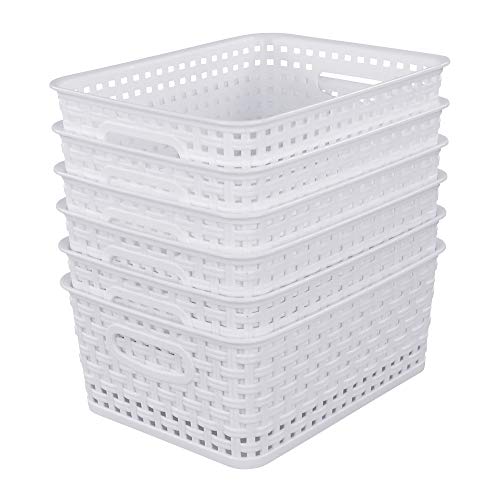 Sandmovie Lot de 6 paniers de rangement en rotin blanc