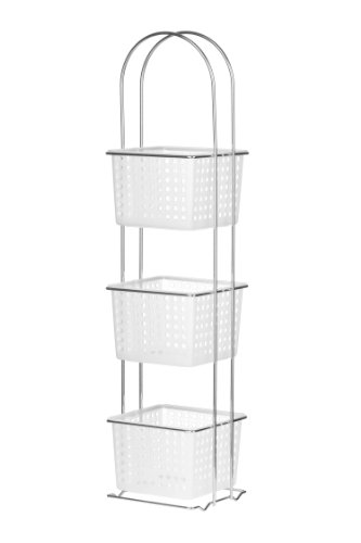 Premier Housewares Paniers de rangement 3 niveaux Paniers plastique/structure chrome Blanc 20 x 19 x 85,5 cm